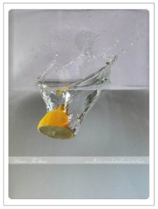 I catch this photo with my Nikon D90, i use a small water tank, a lemon, white board as a background and stand for the D90, Click here to see the stage.