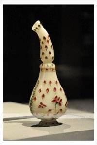 The Arab use this to Splashing the "Rose Water" (kind of perfume) on their guests. This masterpieces made of shell decorated by Red, Green and gold flowers.