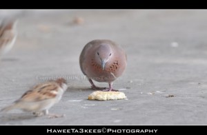 When it comes to size, the largest often wins, or gets the biggest share, This is what happened at the “Bread Crumbs Party”, the Pigeon got the biggest share.