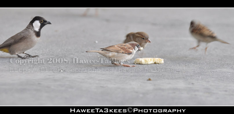This Bulbul just arrived to join and enjoy the Bread Crumbs Party, So can he take-part in this meal? Or the Small Birds have another thing to say. …[Click the image to enlarge]
