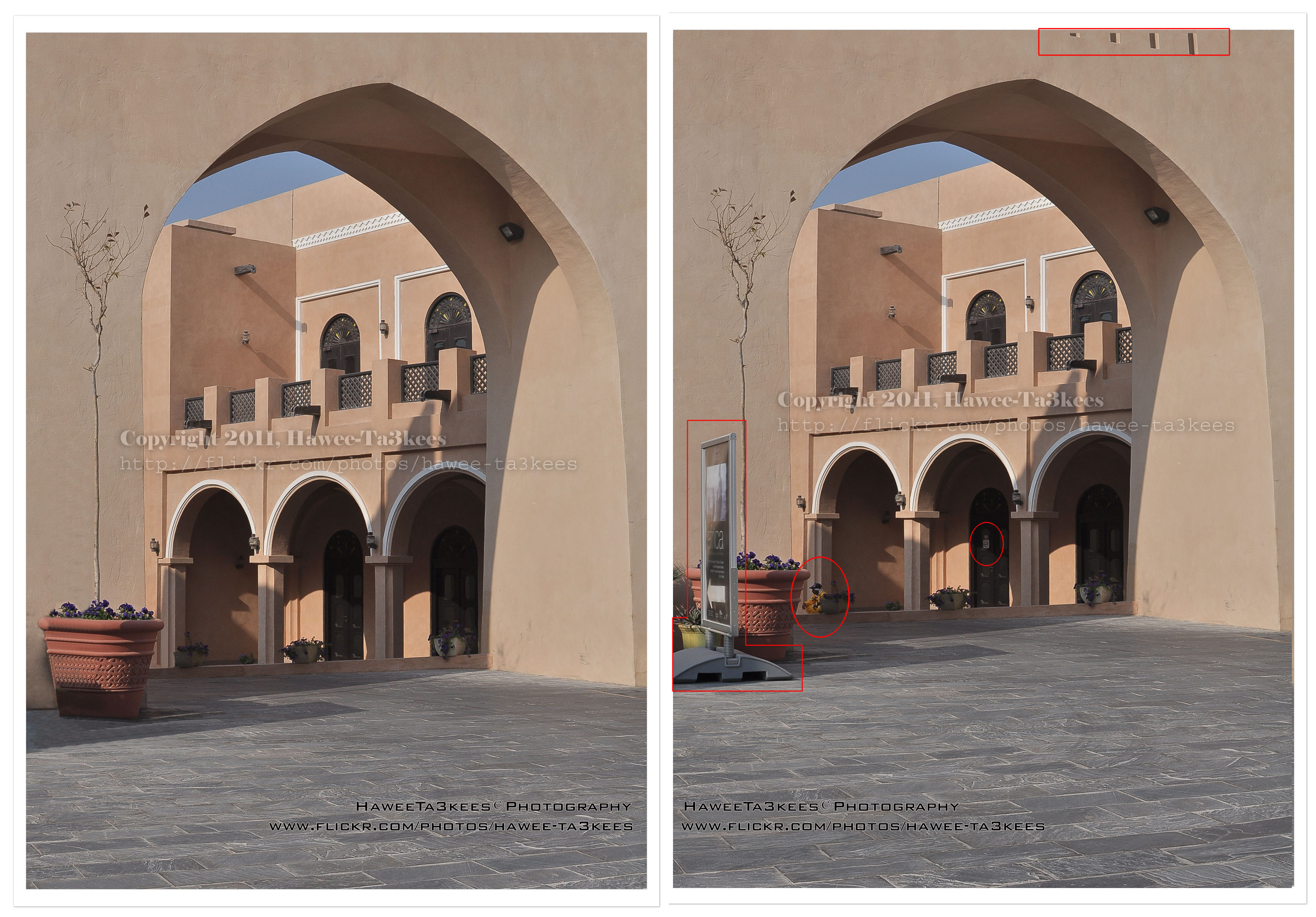 PhotoShop is one of greatest photo-edit software, you can remove lots of non-wanted objects from a capture you take. Here are tow photos from KATARA you can see the Before & After some PhotoShop Touches, see the circles.[Click the image to enlarge]