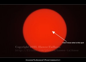 Here is a shots for the sun and it was great to see the small black spot on the sun! i don’t know what is it but it’s there you can see it, too make sure it is not a dust on my lens; i move the camera to the right and left but the spot dose’t move which mean it it not on the camera it is something on the sun or close to it it may be a planet… Have Fun