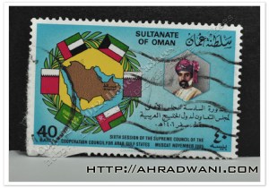 This is another stamp from Oman of the Sixth session of the Supreme Council of the Cooperation Council for the Persian Gulf countries held in Sultanate Oman 1985.