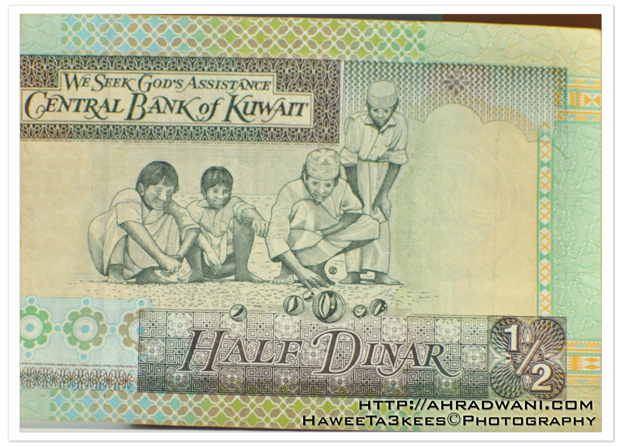 This is a shot of the 0.5KD Kuwait Diner [1$ = 3.7KD], the art on it shows four boys playing with crystal balls the most famous traditional game in the Arabian Gulf called ” Tellah ” (pronounced as ” Tea la”)