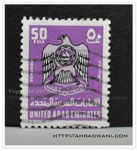 Here is one of UAE stamps collection, this one is for 50 Fels, issued in 1976.