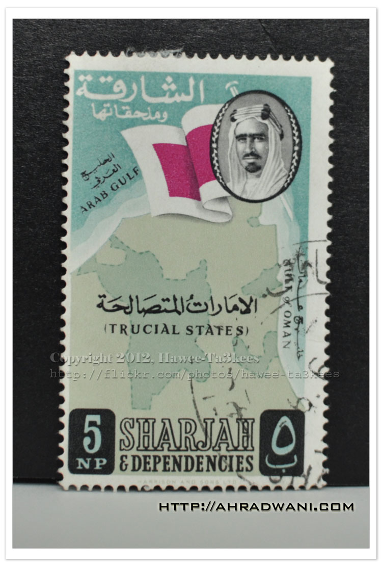 This stamp goes back to 60th issued in UAE TRUCIAL STATES Sharjah & Dependencies. The photo of HH Dr. Sheikh Sultan Bin Mohammed Al Qasimi, Born on July 6, 1939 he has ruled Sharjah in 1972.