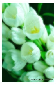 Here is a shot of a white Tulips Bouquet I use my Nikon 105mm Macro lens and the Nikon SB900 for lighting and I add some effect with photoshot.
