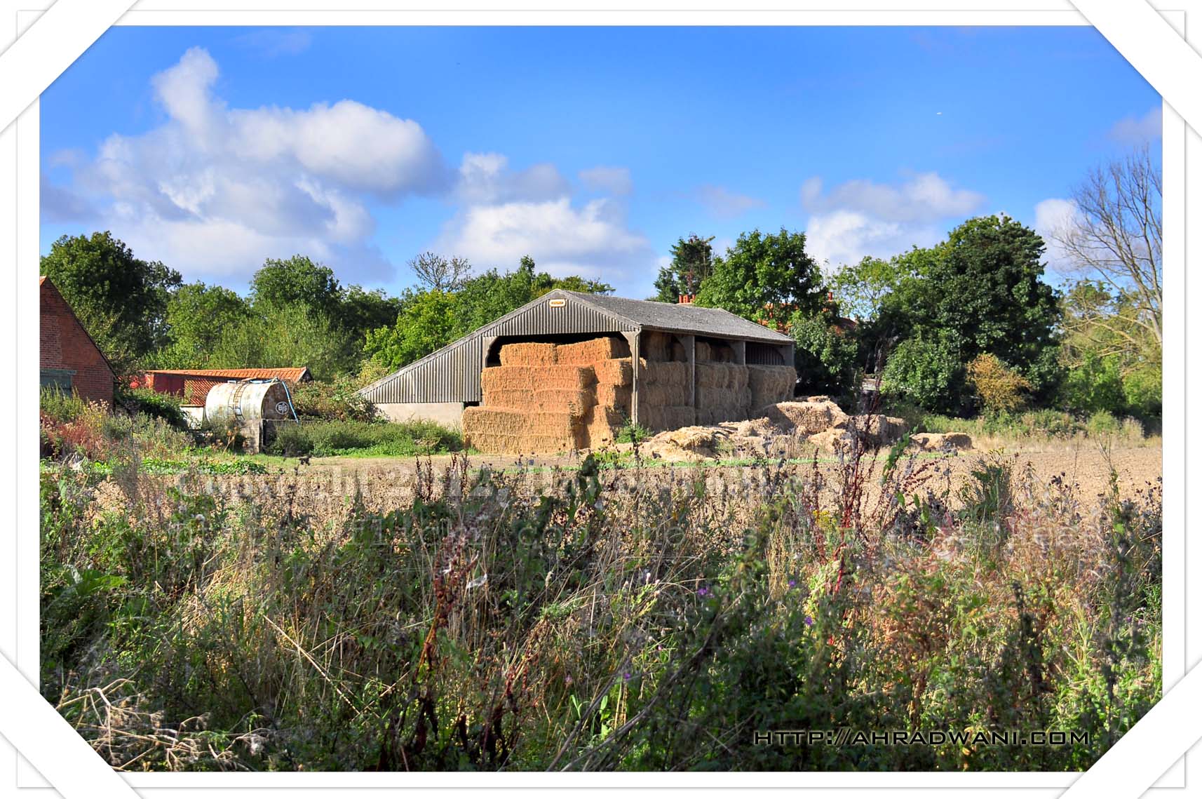 The day before, The tractor were harvesting the fields; but now all the hay are packed & stored here and later on will be moved. I use the NikonD90 and Nikon 18-300mm lens with some crop and re-size and color enhancing for the sky. Captured in Ingatestone, Essex UK.