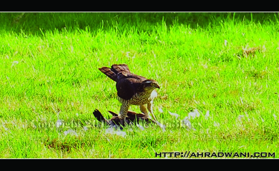 طائر الباز وقد اصطاد حمامه وياكلها تم التصوير بكاميرا نيكون وعدسه نيكون 18-300م