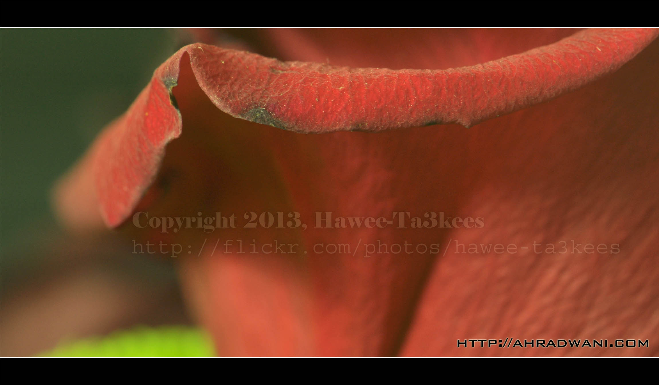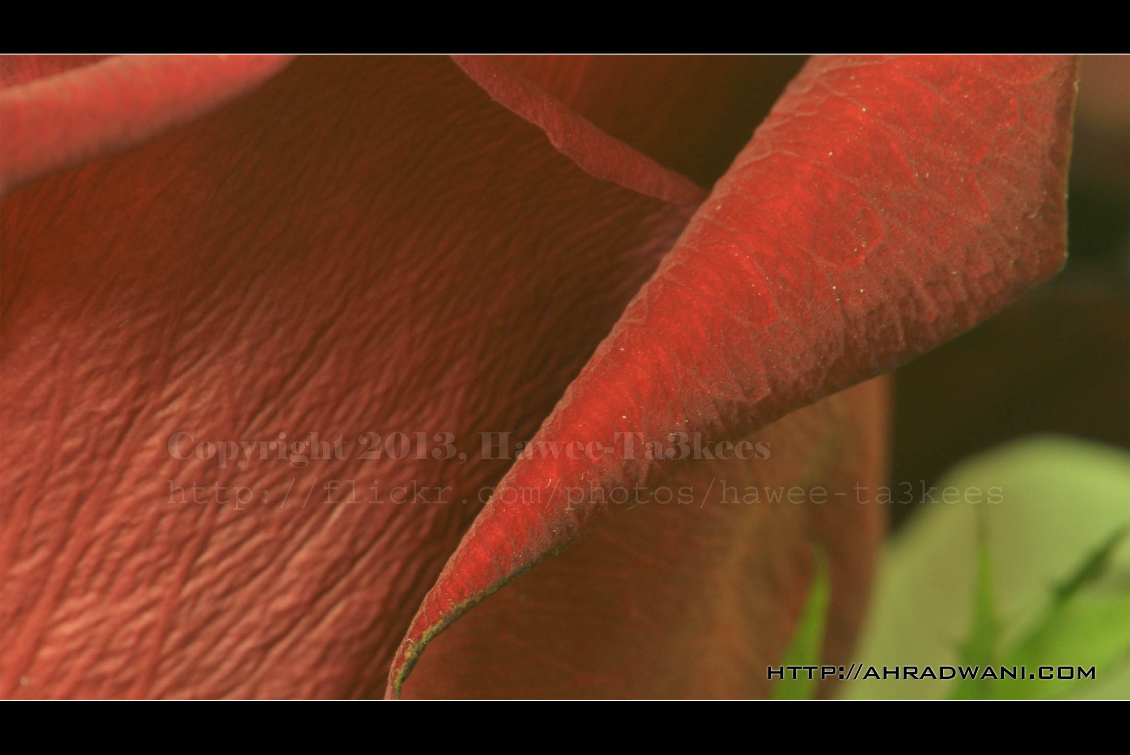 Macro on a Rose showing the lines and velvety looks, this beautiful Rose stands in the vase in front of my Nikon 105 Macro lens and the D90 camera, I take more that 35 shots in this session.