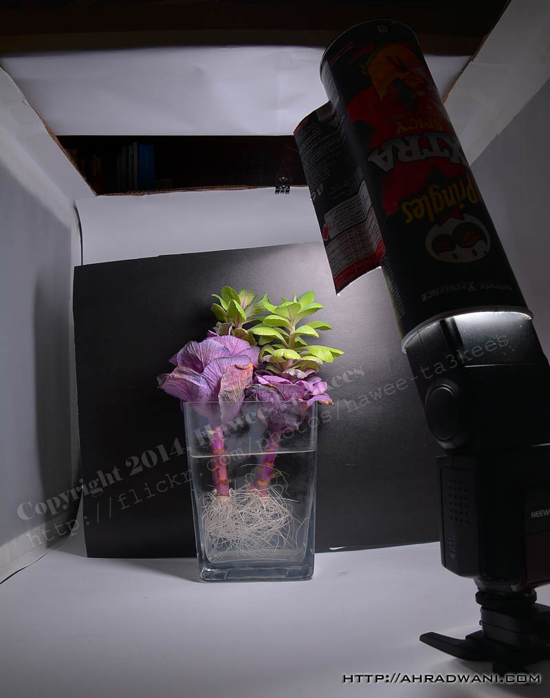 Here I am taking a shoot of the root of this tree, using the lightbox, home-made pringles flash diffuser, camera Nikon D7100 and Nikkor 18-300mm lens.[Click the photo to enlarge]