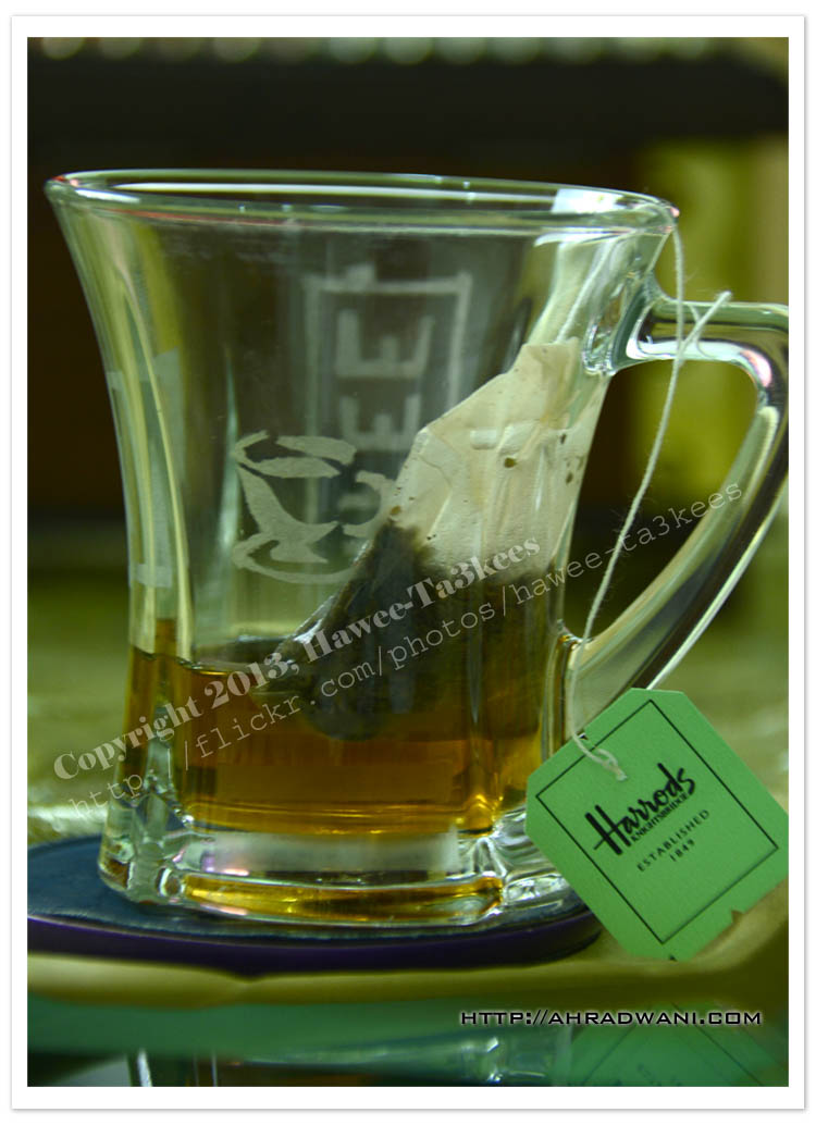 Here is a shot of a Harrods Green-Tea mug, Camera Nikon D7100, Nikkor 18-300m no-flash camera in-hands.