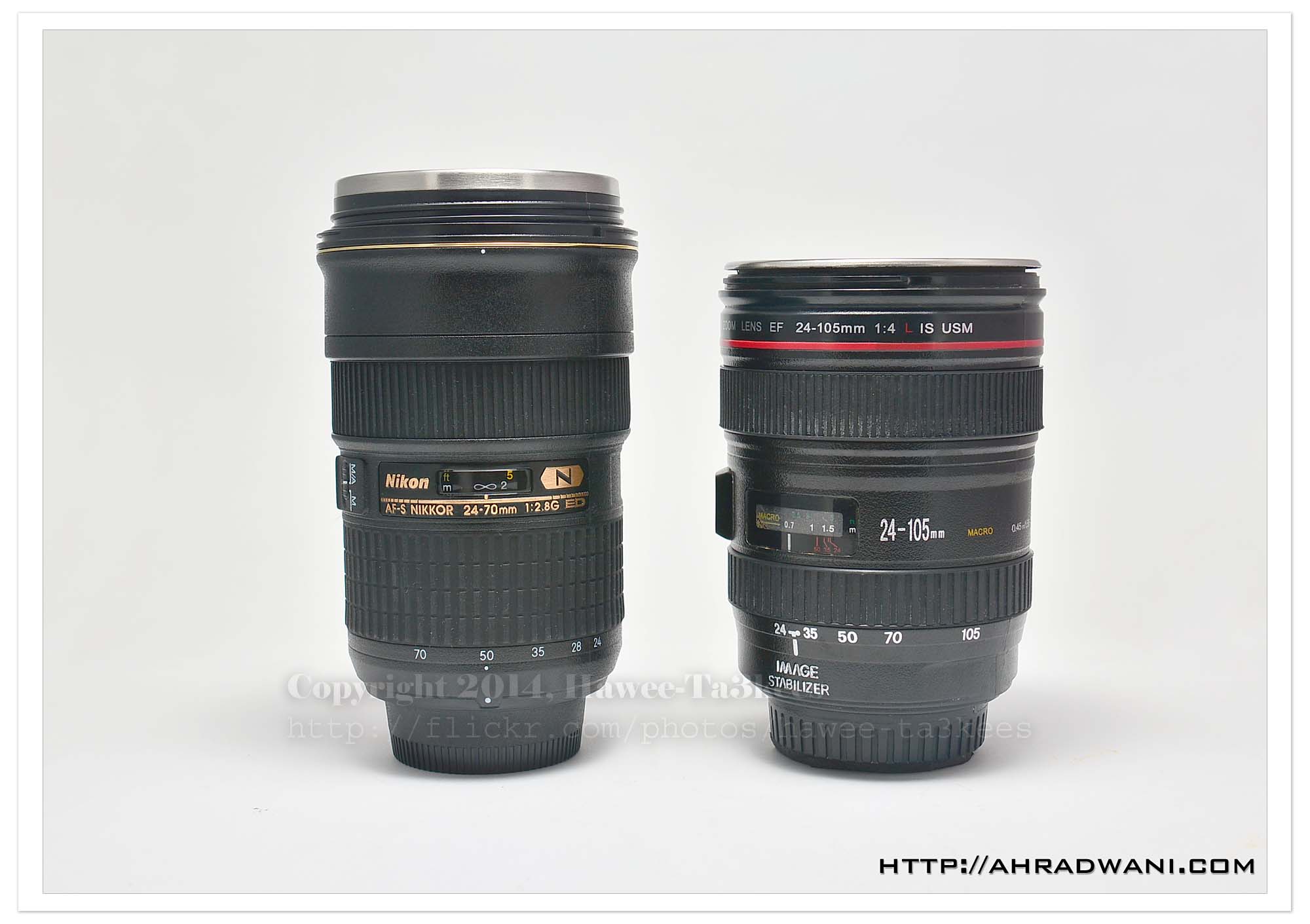 Here are my two coffee mugs, Canon 24-105mm that i own long time ago, and Nikon 24-70mm, the Nikon is the one I gain as a third place prize in the Grays of Westminster competition. Photo taken in the lightbox using Nikon D7100, Nikkor 18-300m and TT520 Flash.