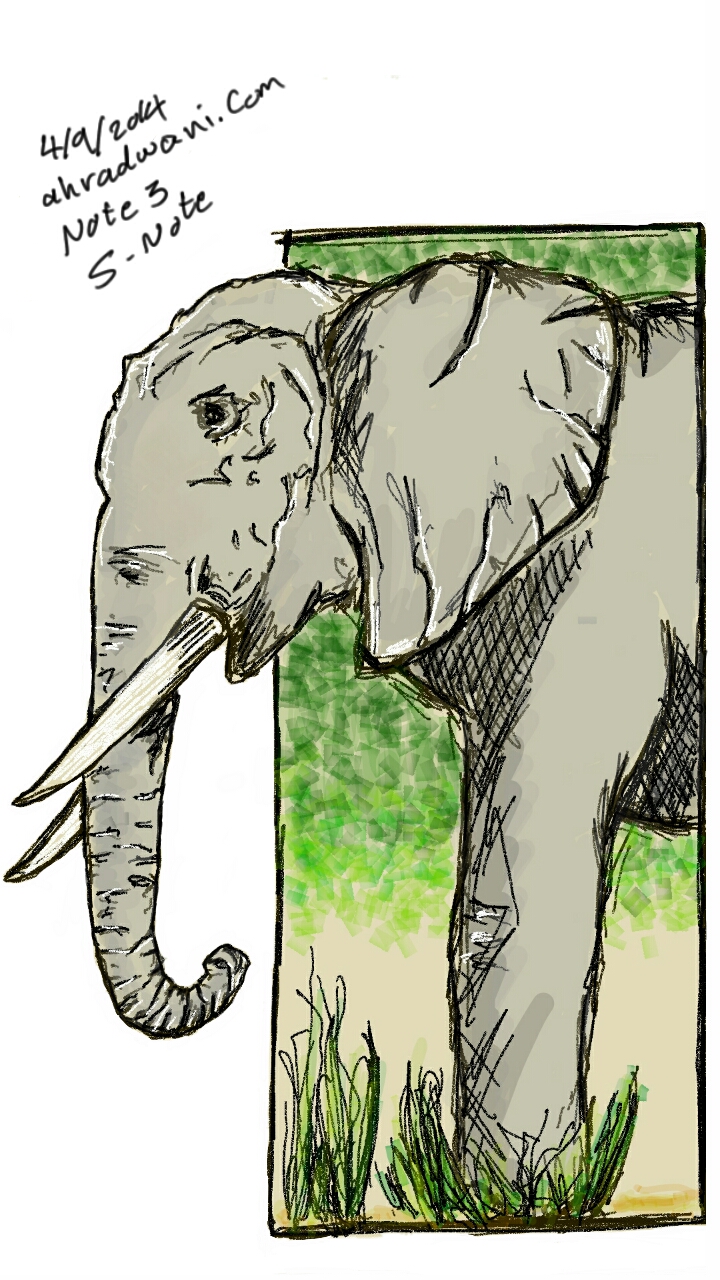 Here are two sketches for an Elephant, before and after coloring. I am using Samsung Galaxy Note3, S-Note Application.