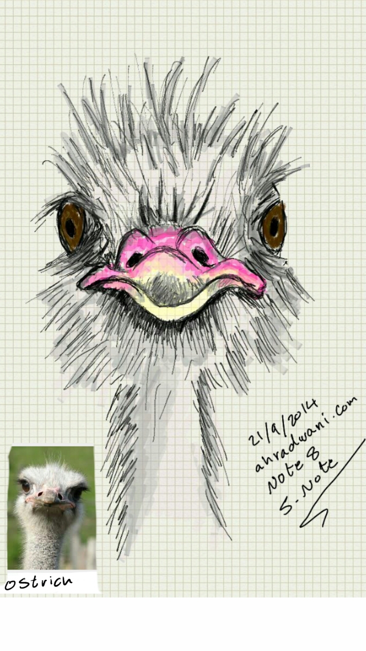 Here are another Sketch of Ostrich face, most of my sketches are from photos I fond in magazines or news-paper or the internet. I am using Samsung Galaxy Note8, S-Note Application.