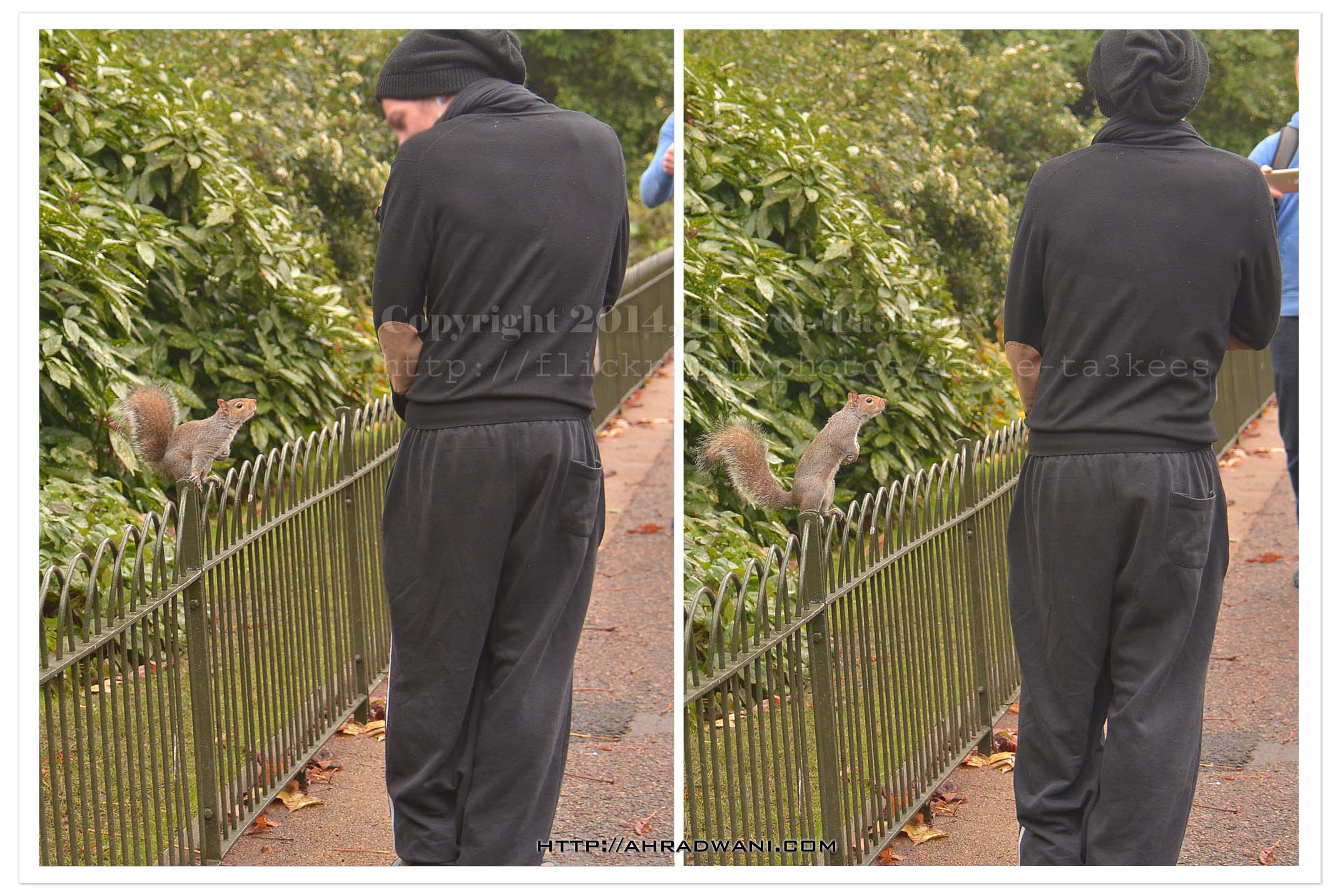 Amazing moment when a man was passing next to a Squirrel on the fence, as if the squirrel pleading to the man “Feed Me, please!”. I take the shoot using Nikon D7100, Nikkor 18-300mm lens.