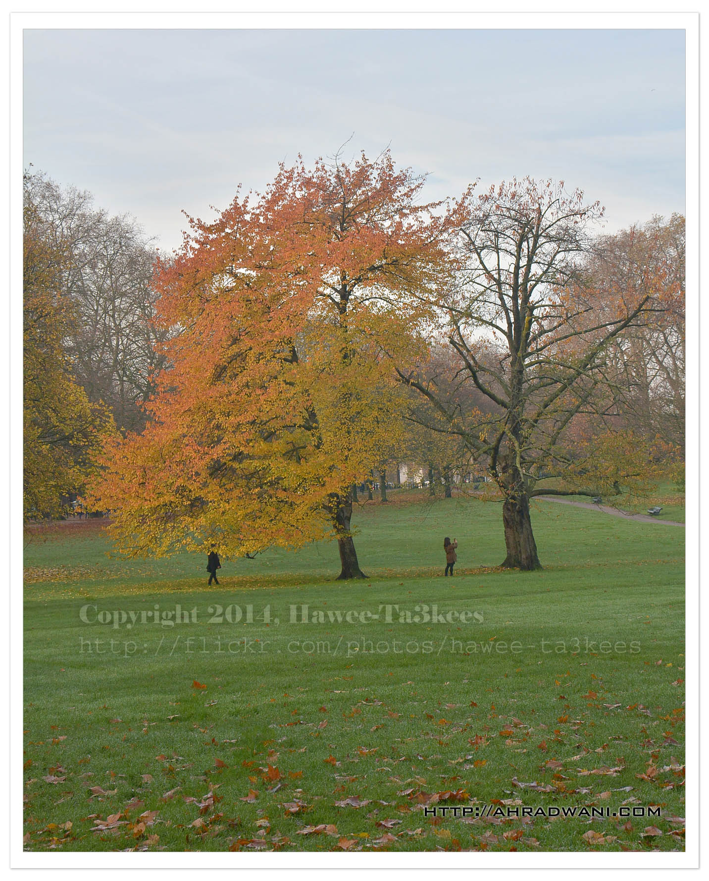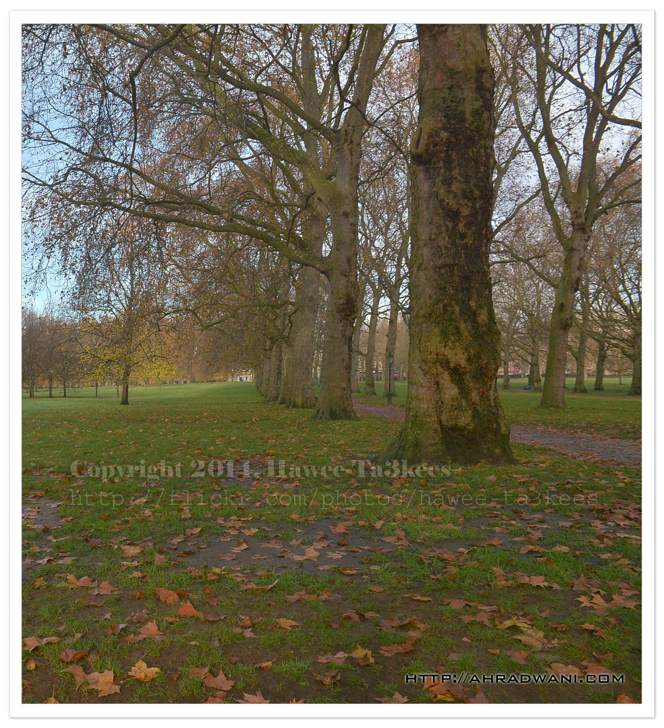In a Lovely cold day during my walking journey I take this photo in the Green Park in my way to Piccadilly area; this is an image of tow trees stands next to each other I use Nikon D7100, Nikkor 18-300mm lens.