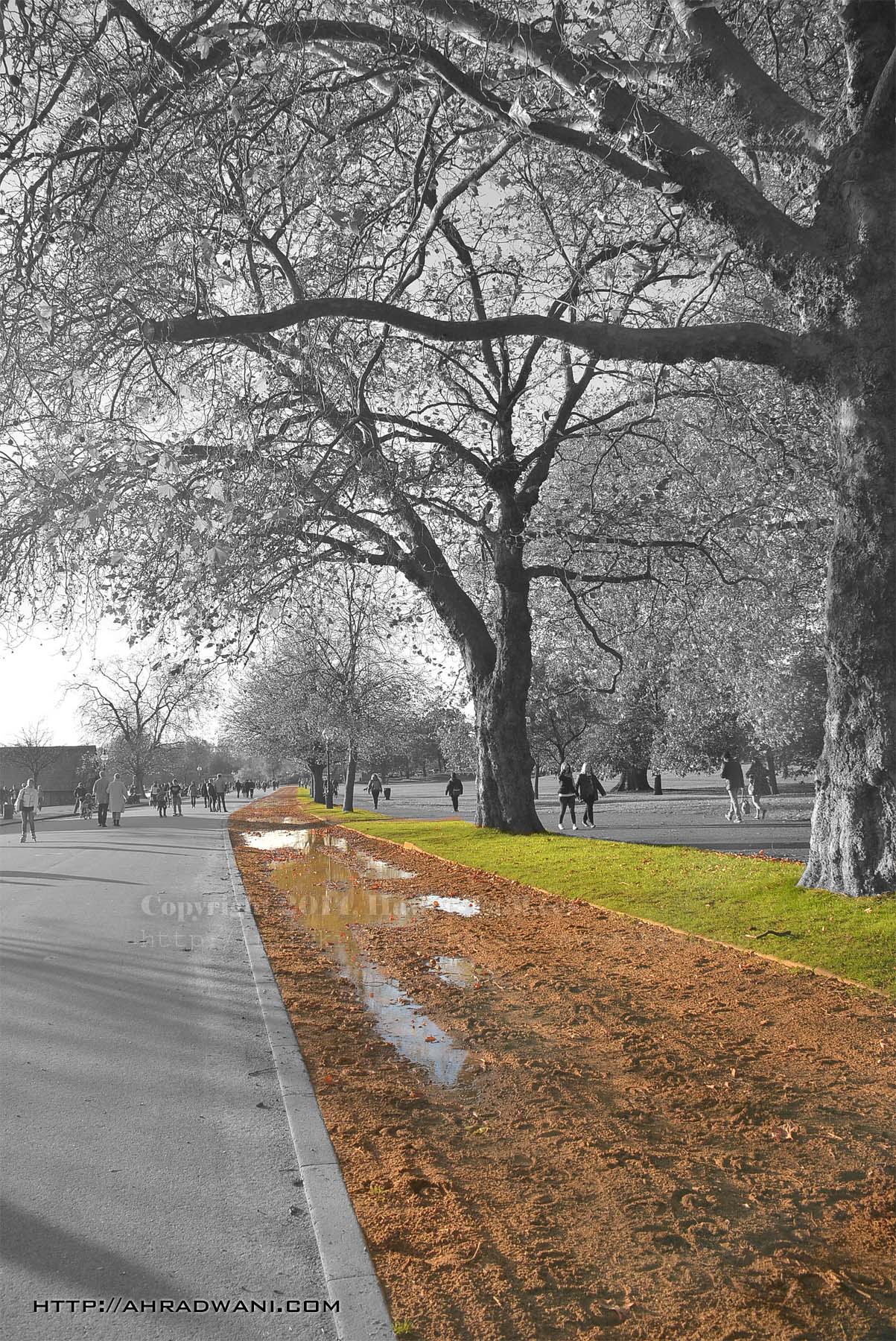 This is a photo of the Hyde Park London in a sunny-day, I use the photoshop app to remove some colors and get this result of the horse track. I am using the Nikon D7100 and Nikkor 18-300mm lens.