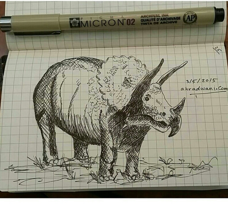 رسم سكيتش ديناصور باستخدام قلم حبر، محاوله لتطوير مهارة الرسم