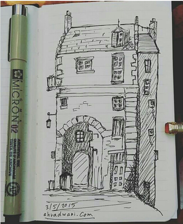 I am sketching to enhance my skill, here is one of sketches from my sketchbook using pencil water color and ink-pen to finish the drawing.