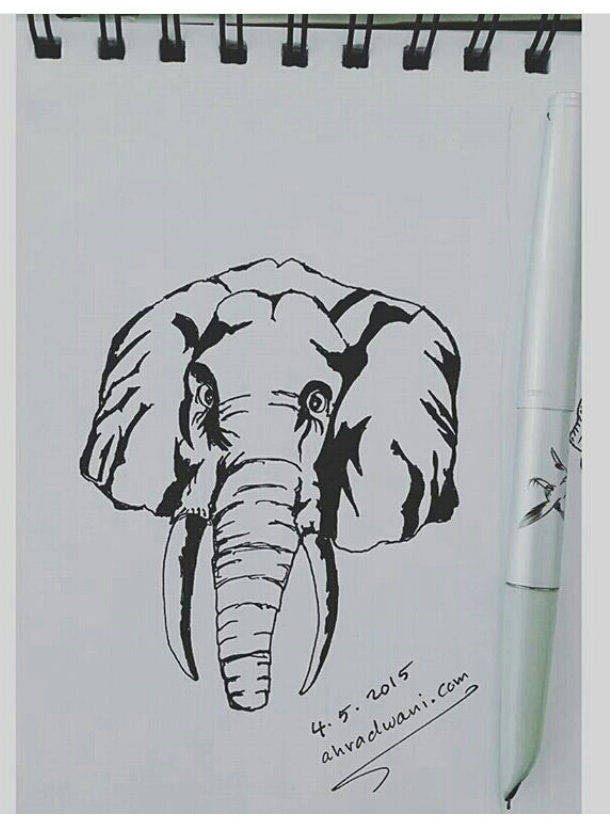 رسم سكيتش فيل، باستخدام قلم حبر… الرسم على قصاصات دفتر الرسم رقم 6