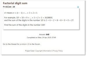The Task: The task in projectEuler P20 is to get the sum of the digits in the number Factorial of 100!