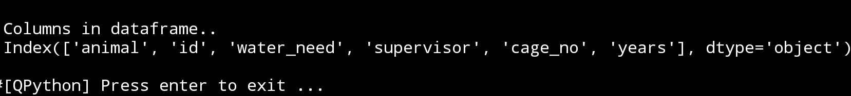 We still working on our data_file_zoo.csv and here i am copying the column we have in the file or in our df.