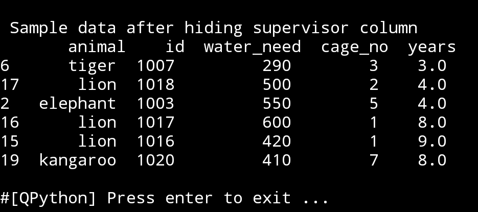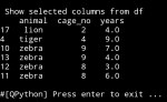print(‘\n\n Show selected Columns from df\n’,animal_cage_years.sample(6))