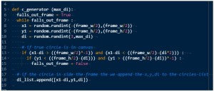 If we need to add some flowers on the tree, then we need to do two things, first one is to write a function to draw a flower, then we need to add a variable to our rule that will generate a flower position in the pattern. First let’s write a flower function. We will assume that we may want just to draw a small circles on the tree, or we may want to draw a full open flower, a simple flower will consist of 4 Petals and a Stamen, so our flower drawing function will draw 4 circles to present the Petals and one middle circle as the Stamen. We will give the function a variable to determine if we want to draw a full flower or just a circle, also the size and color of the flowers.