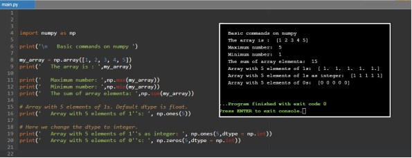 In coming several posts I will talk about the numpay library and how to use some of its functions. So first what is numpy? Definition: NumPy is a library for the Python programming language, adding support for large, multi-dimensional arrays and matrices, along with a large collection of high-level mathematical functions to operate on these arrays. Also known as powerful package for scientific computing and data manipulation in python. As any library or package in python we need to install it on our device (we will not go through this process)