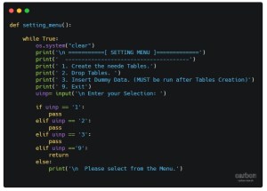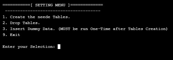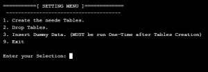 Last menu we have is “Setting Menu”, from here we can create the tables and Insert a Dummy-Data.