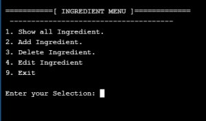 Third menu we have in our application is “Ingredient Menu”, the user will it to manage the Ingredient list.