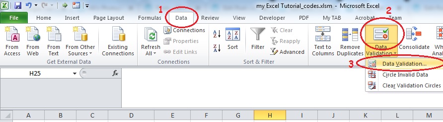 Now go-back to our main Table and using the same way we did in the Static Approach (from the menu we will select “Data” then “Data Validation” and select Data Validation.) AND