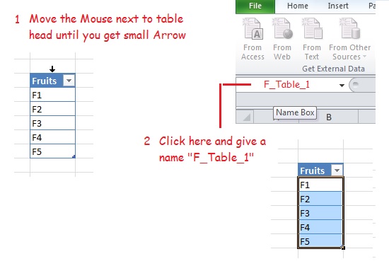 - Then in Source box, we need to type the Name we select for our table “F-Table_1” for the fruit table