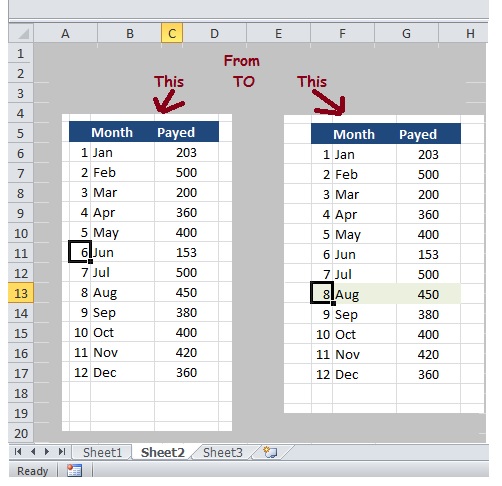 5. You need to know your Table Range, in my example, the range is (“C8:E9999”). I add the “9999” so i will be sure the even if we add more data to out Table the code will handle it.