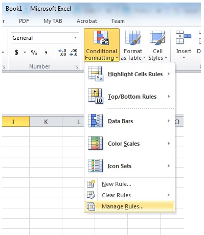 6. Now we need to add a rule in the “Manage Roles” in “Conditional Formatting” from the Excel Menu. Here is how to Open it.