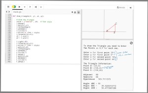 A week ago I start helping a friend in a mathematics geometric to draw a Triangle from Two points that represent the The Hypotenuse of a Triangle, then I deside to write a python project to Draw a triangle based on two given points (x1,y1) and (x2,y2) and to print it’s parameter (other sides and angles). We will use the Trinket.io as a Python interrapter and will draw with turtle library.