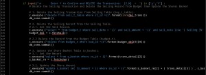 First we will write a Function to Delete a Transaction, we have two types of Transactions “Buying” and “Selling” so the user will select the Transaction Type to delete.