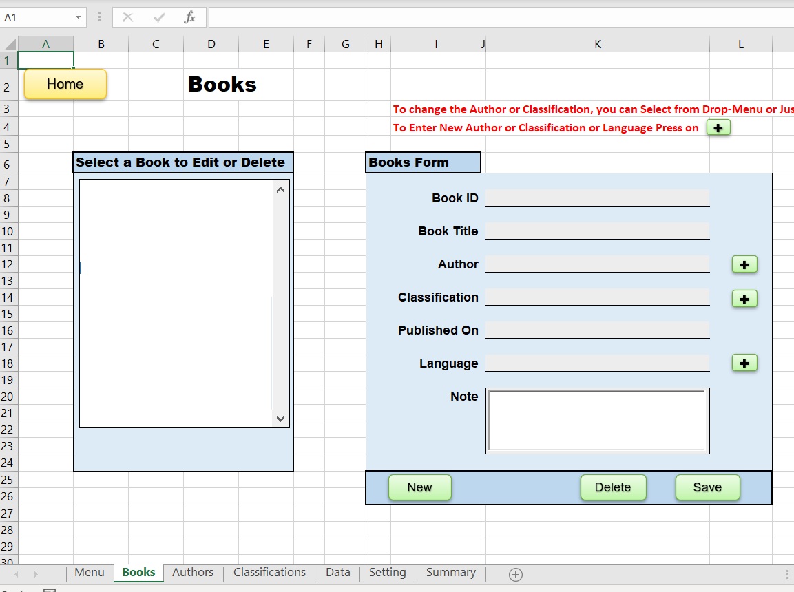 In Books form we have also three + buttons next to Author, Classification and Language cells, if the user did not find say the Author in the list then he/she can add new one by clicking on the +