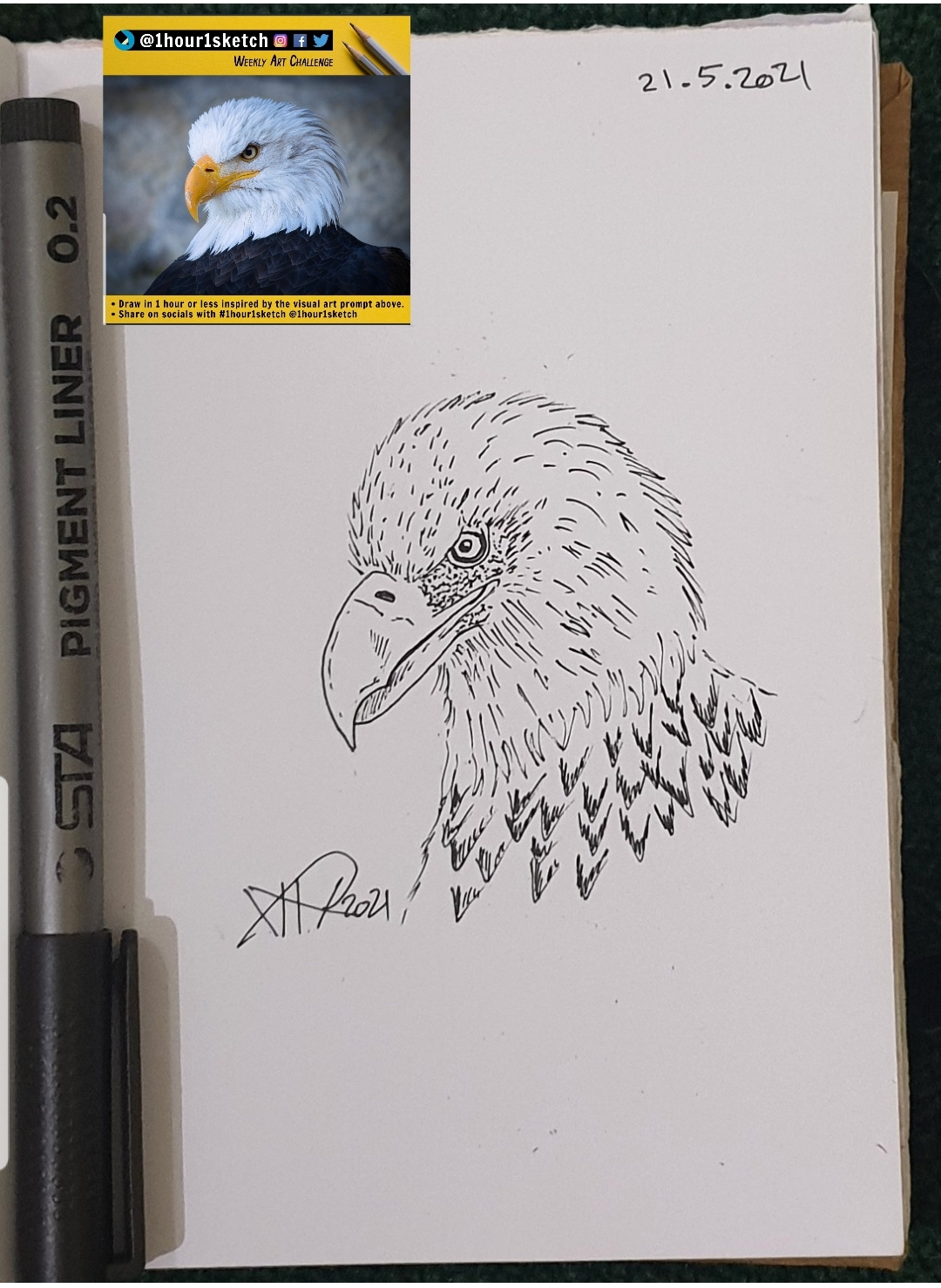 This week sketch challenge @1hour1sketch on Twitter is to Draw an Eagle Face, so here is my sketch using pencil then black Pen, it takes around 15min. More Sketches on my Sketch page ..