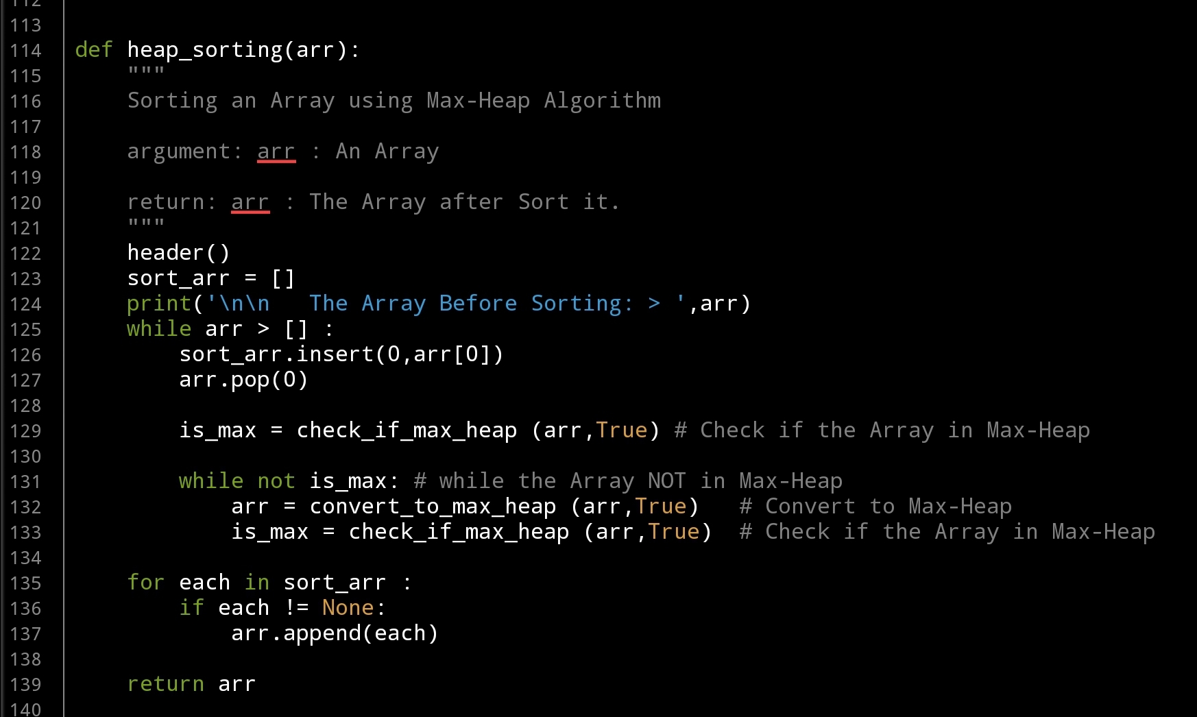 We Delete a Node using def delete_node(arr,inside): then in a while loop we call both def check_if_max_heap (arr,inside): and def convert_to_max_heap (arr,inside): so let’s see the code..
