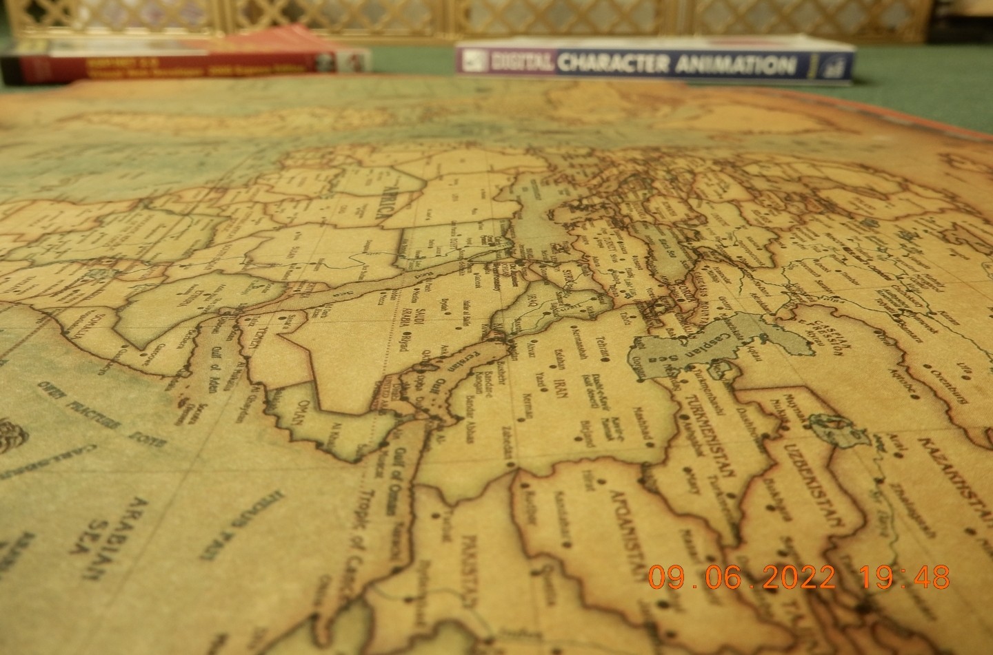 This Shot: Couple of months ago – or so – while I was teaching my kids, I notes that I don’t have any World Map larger than A4 Book-page size. So search the net and I bought a vintage-looks world map from Aliexpress site. I think I will hang it in my Office. Here I use the Nikon S9900 Camera almost on ground-level with manual setup and slow shutter to get more lights in, i use two books on the corners to keep the map from rolling.