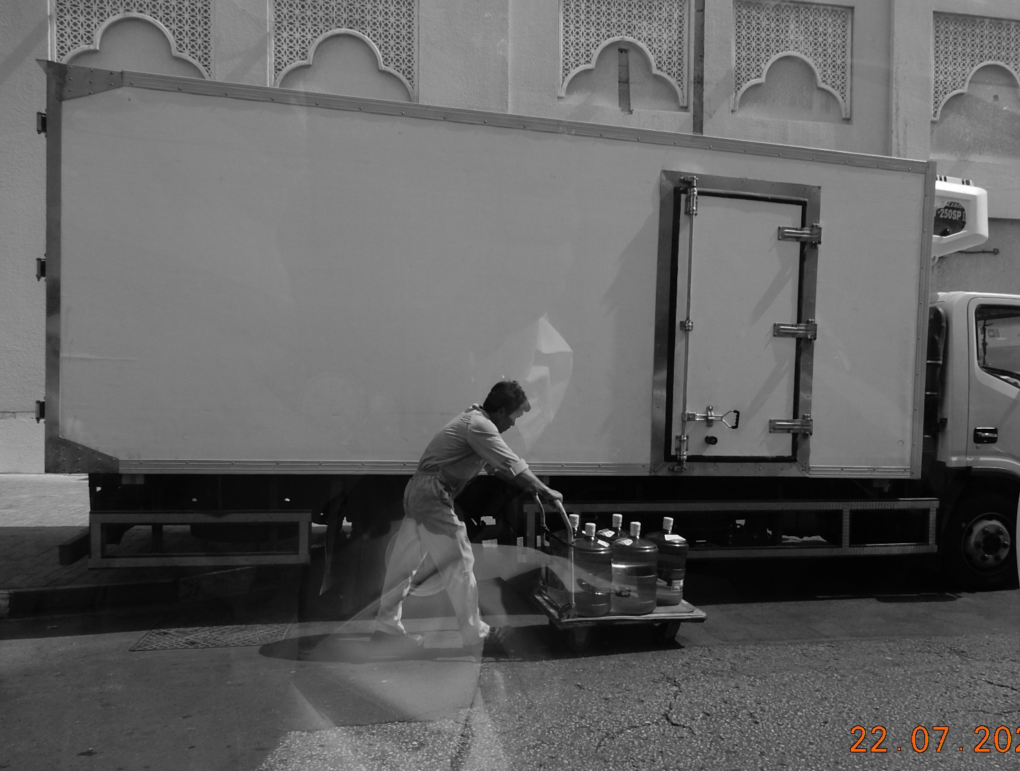 I was parking my car and waiting for a pick-up pack, and were playing on camera setting suddenly I noticed this worker pushing the water cart, I then just raise push the Shutter with out thinking in the composition. This what I’ve got.