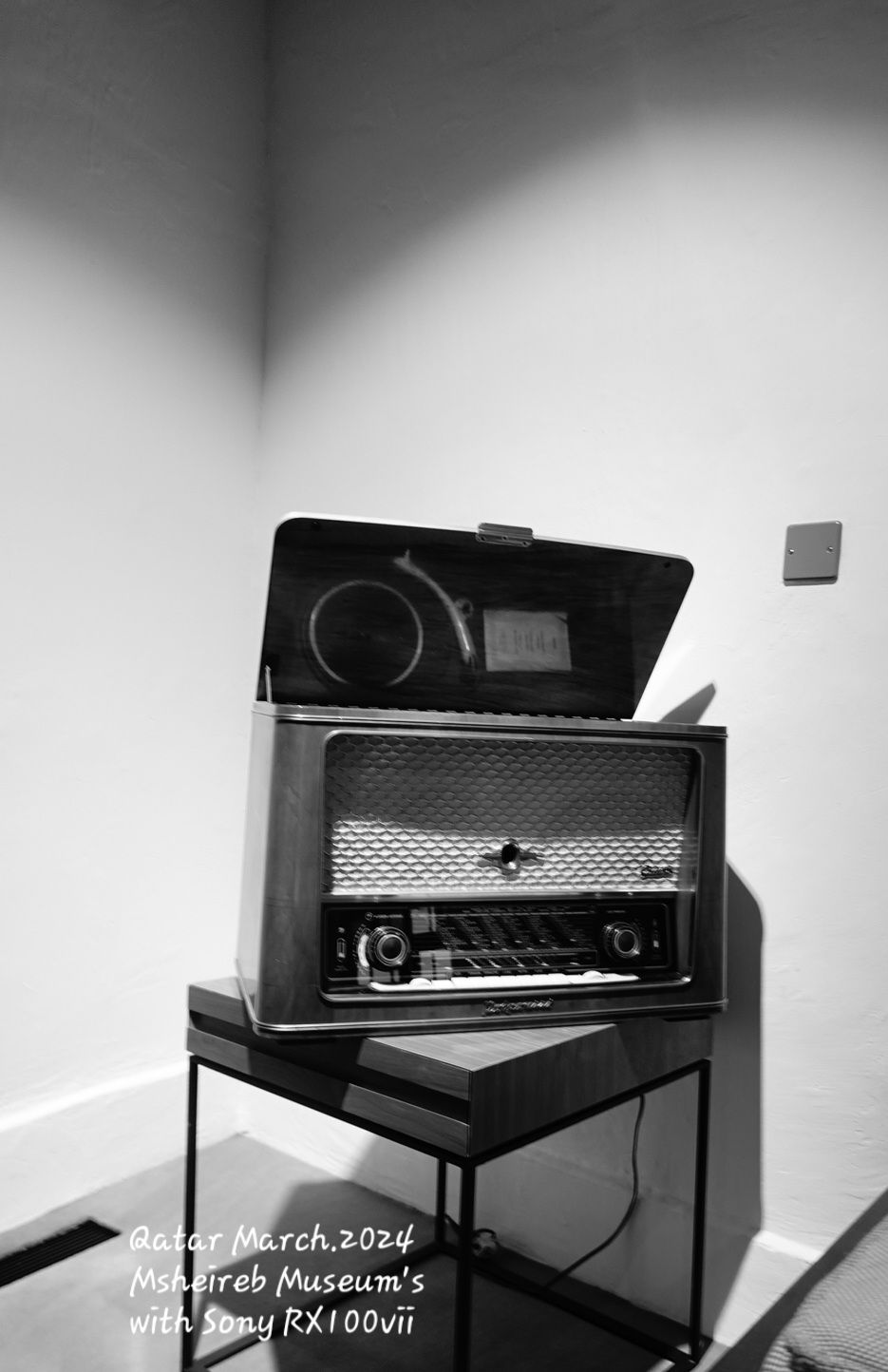 Old radio fond on display in one of Msheireb museums, I take the photo with my Sony RX100vii camera while waking around in Msheireb Downtown.