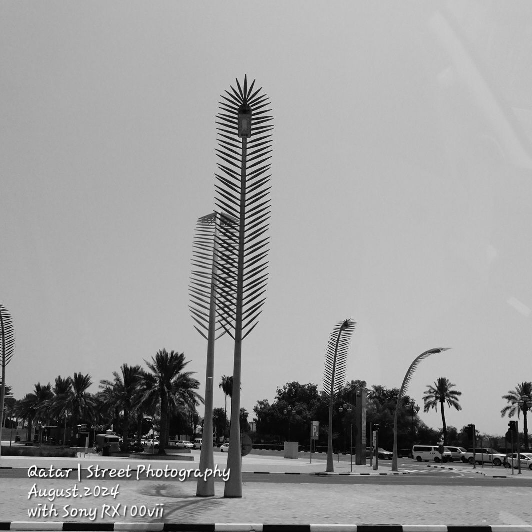 Street Photography of a road, these are street lights, the structure is a palm leaves 🌴
