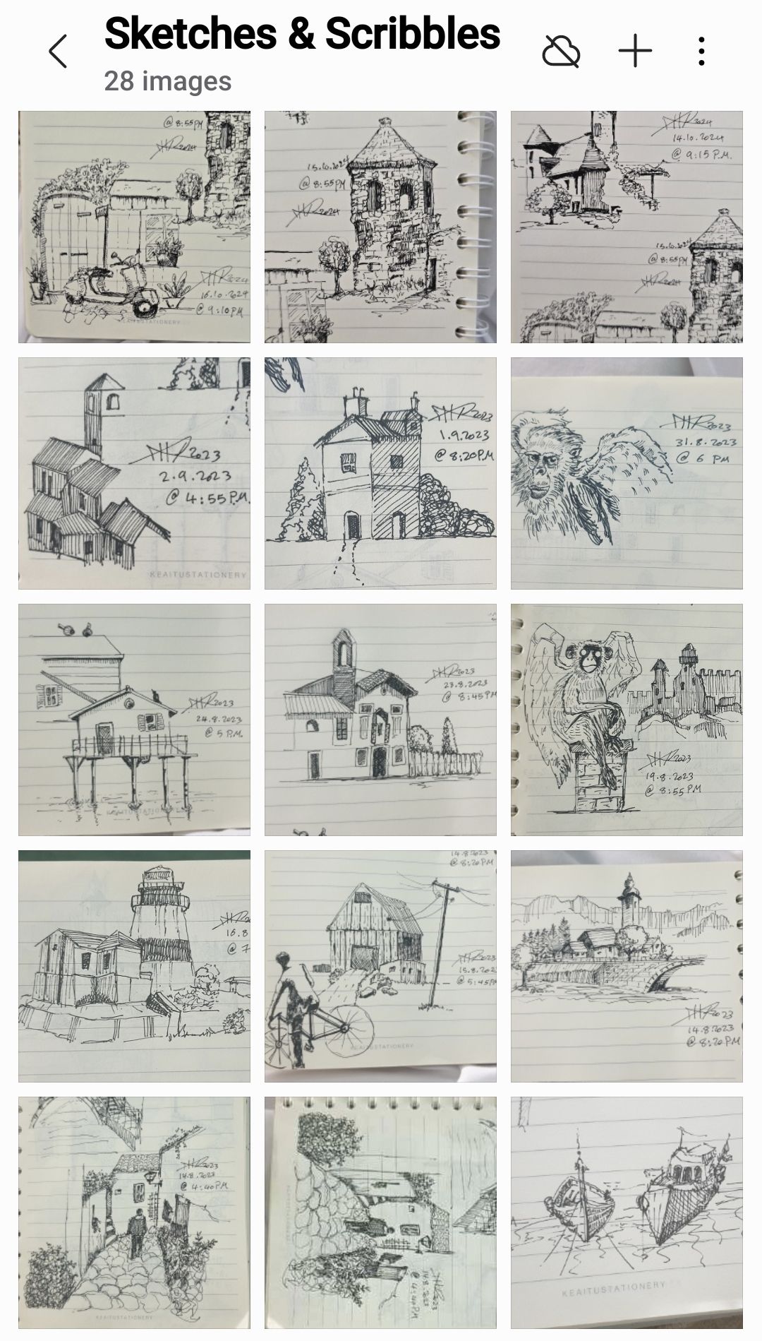I thought I may share this screenshot for some fast and loose sketches and/or scribbles from my lined book. I am doing this in black-ink 0.3mm nib-pen.