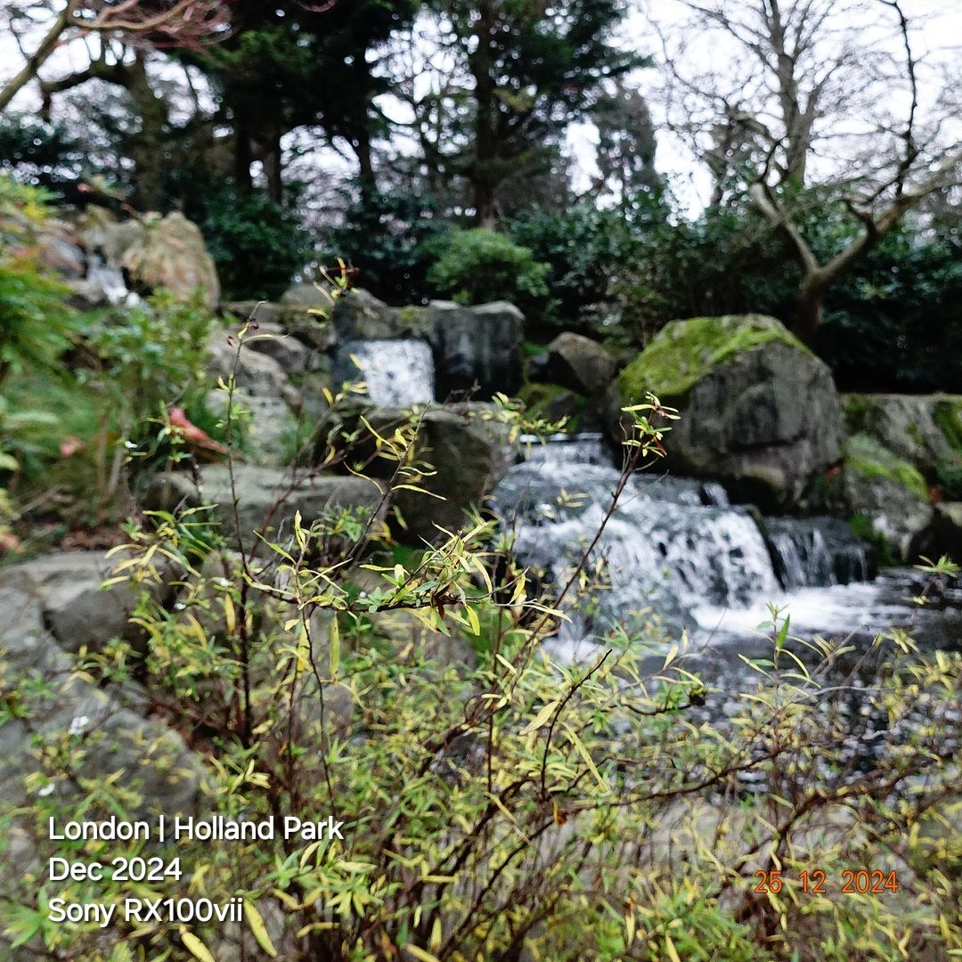 Very beautiful small artificial lake and waterfalls in Holland Park called “Kyoto Garden”. I take several photos here is one.