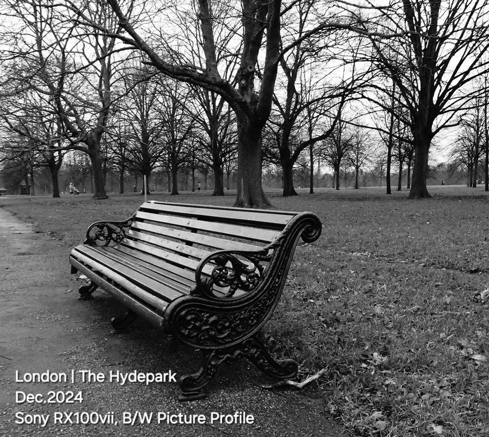 The classic old and beautiful chairs in Hydepark, I take the shot using Sony RX100vii camera in Black and white picture profile.