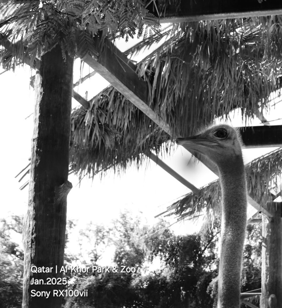 Here is another shot for the Ostrich with almost 100 mm Zoom, using Sony RX100vii camera in Black and white picture profile.