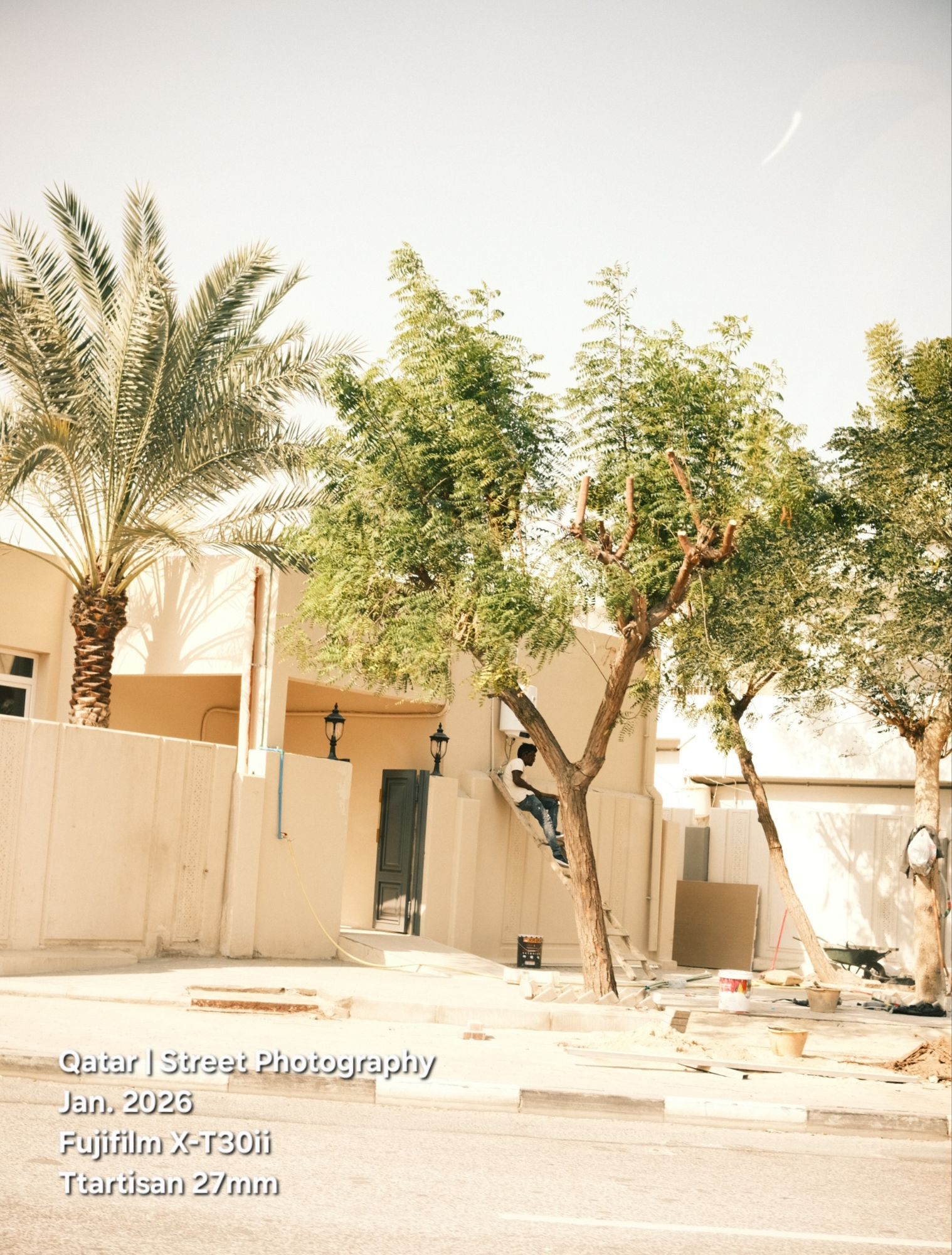A worker is trimming the tree 🌳. I take the shot using Fujifilm X-T30ii camera with Ttartisan 27mm f2.8 lens.